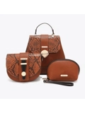 Designed to cater to all your storage needs while adding a touch of elegance to your ensemble. This set includes a backpack, a crossbody bag, and a convenient pouch, each crafted with meticulous attention to detail and functionality. First, let's talk about the backpack. It features a convenient handle with a 3-inch drop, allowing you to carry it effortlessly when needed. The adjustable shoulder straps ensure a comfortable fit, allowing you to wear it for extended periods without strain. The interior clasp with snap button fasteners adjoin the sides, providing extra security for your belongings.